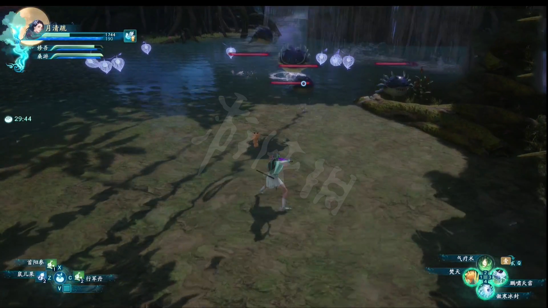 3.都准备好后,就可以一直在这里刷小怪爆灵果了,注意要多打荧惑木,只有这一种怪掉落灵果,就是如图所示的这些小怪物。