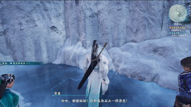 将石头与雪丸子手中的灵石进行交换,任务完成,这个任务奖励有灵池钟乳x1、大灵果x1、金钱x500、经验x600。
