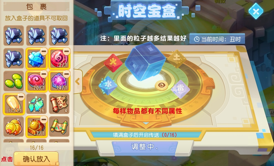 1、作用:每周可以上交16件物品,宝盒会进行重组,并带回新效果物品。使用方法:点击宝盒放入物品,点击确定开始传送