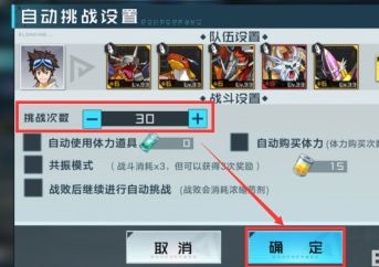 4、弹出自动挑战的设置界面,根据歌人需求,设置号挑战的次数和其他参数。