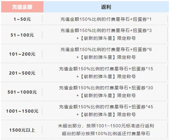 若想了解更详细的充值返利规则,可点击链接查看公告:『星遇』测试充值返利规则