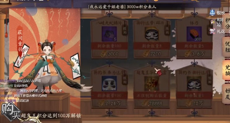 1.超鬼王的奖励吗,每年都是差不多的,都有体力、勾玉、达摩、御魂素材、结界卡、一个式神皮肤、小鹿男兑换券(不是)、金币等等东西