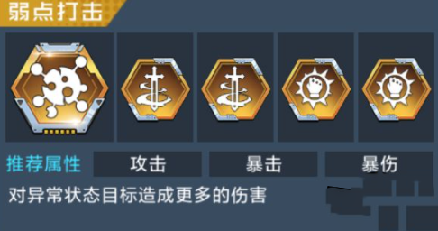 在PVP模式中,可将弱点插件替换为突击插件,来提升对增益目标的伤害(取决于竞技场环境,大多数阵容以“增益”属性居多,用突击插件可发挥更大作用)。