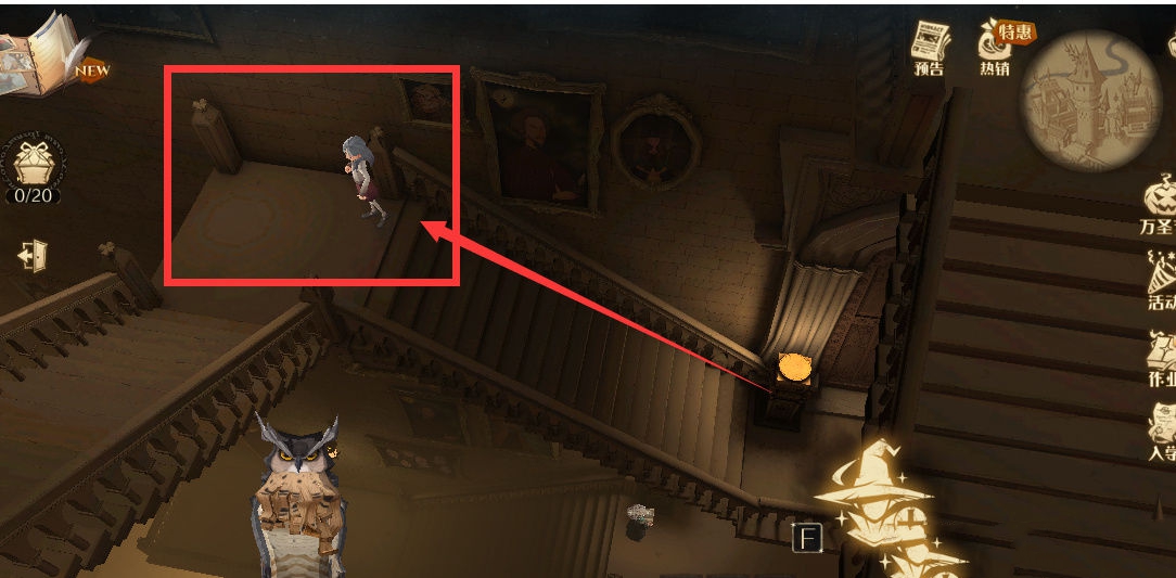 然后分享一个能看到艾薇所有刷新点的位置,不需要一直逛楼梯,站在这个点上就能知道刷没刷艾薇,这个点就是图书馆门口也就是P8位置,通过旋转视角可以看到7个刷新点位。