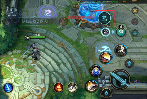 2.然后我们把大招图标往右上角的这个【沙漏】拖动,就是下图所示的区域(其他技能CD时间发送同理);