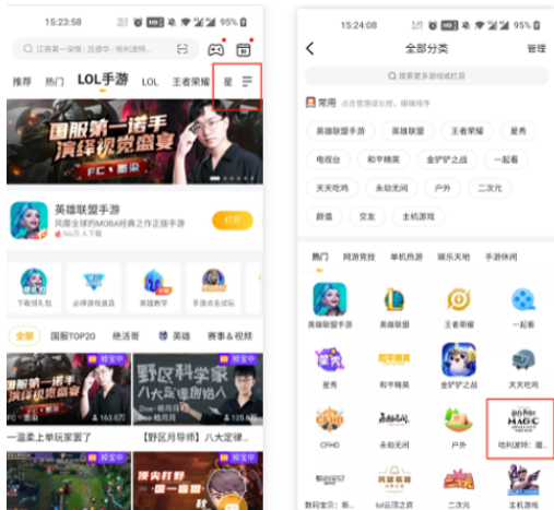 1.打开虎牙直播,选择右上角三条横线,选择哈利波特魔法觉醒