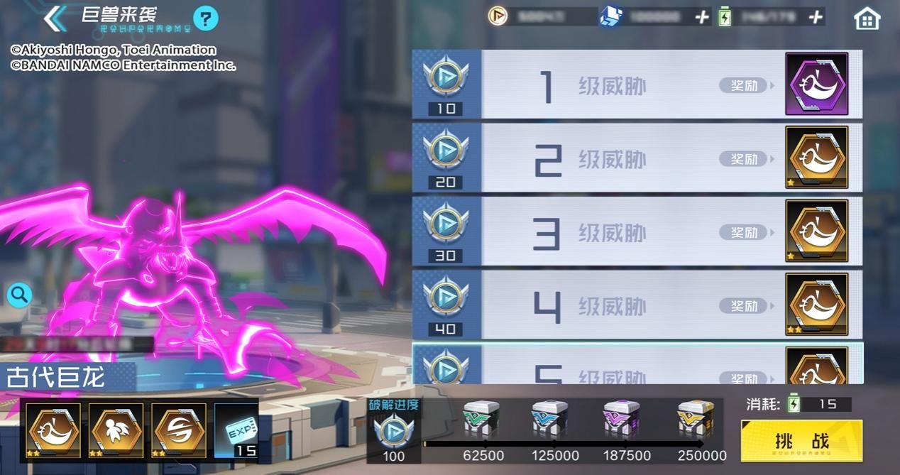 4.玩法简介:巨兽来袭将周期性开放,每次开启时挑战的Boss不尽相同。队长可消耗体力挑战巨兽,每日挑战次数不限,每个挑战类型中,又分为多个难度的关卡,完成巨兽来袭的关卡,可以获得相应奖励。难度越高的关卡,获得奖励越好,队长挑战胜利后会增加破解进度,全服破解进度到一定值后可领取对应奖励。