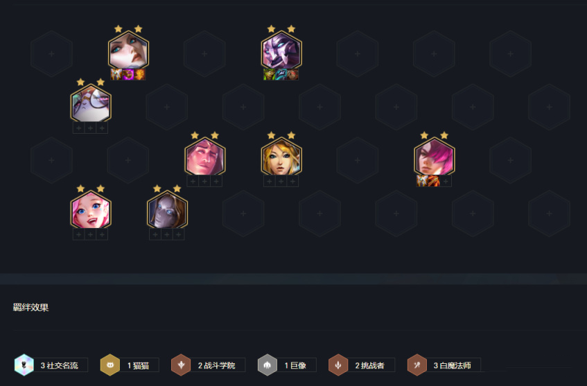 棋子构成:波比、布隆、璐璐、迦娜、悠米、崔丝塔娜、烬、奥利安娜