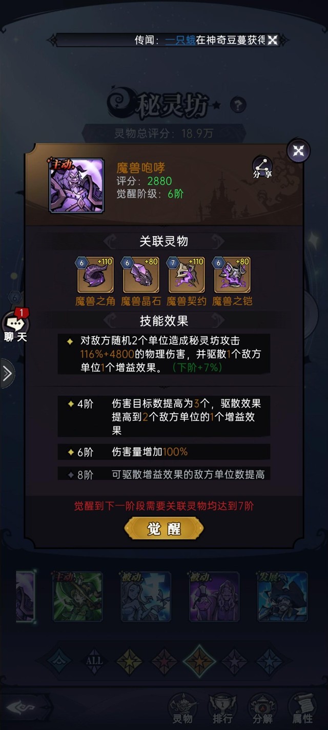《魔镜物语》灵物选择攻略被动区别不大,就是加攻加防。讲几个有小操作的主动:蓝色蛤蟆(暴怒一击)首先,破防和眩晕