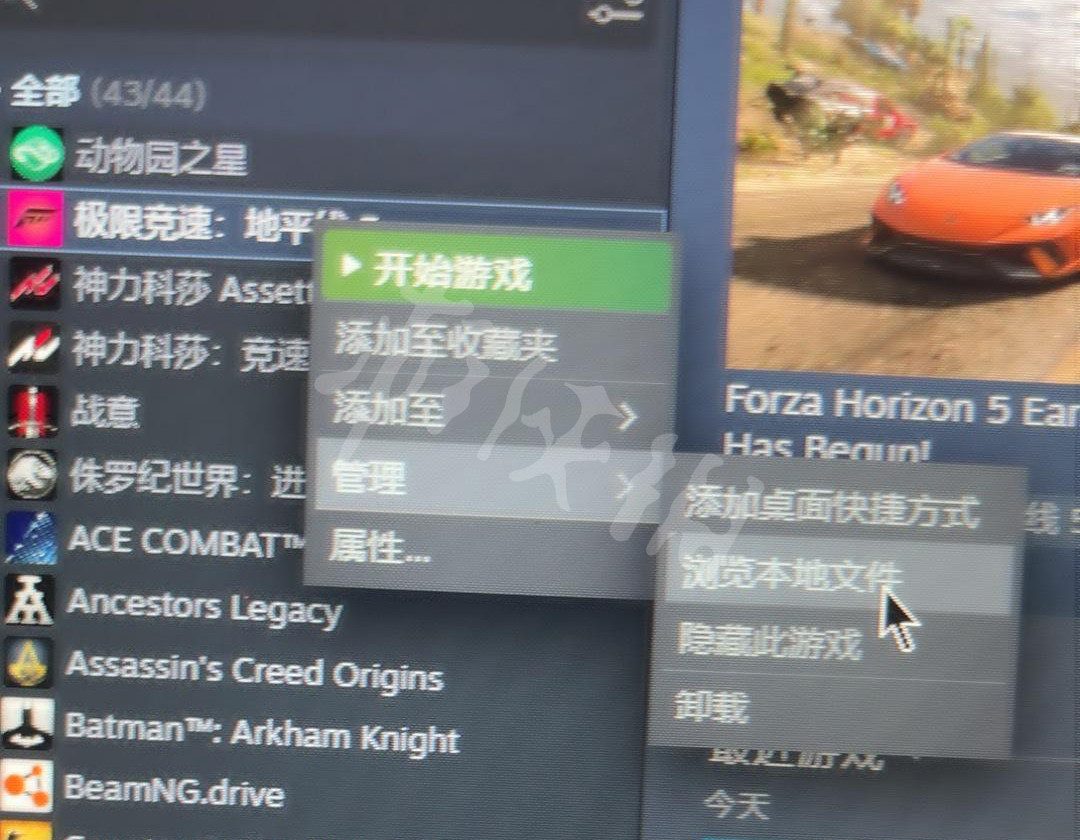 一.打开游戏库右键管理然后打开浏览本地文件夹。