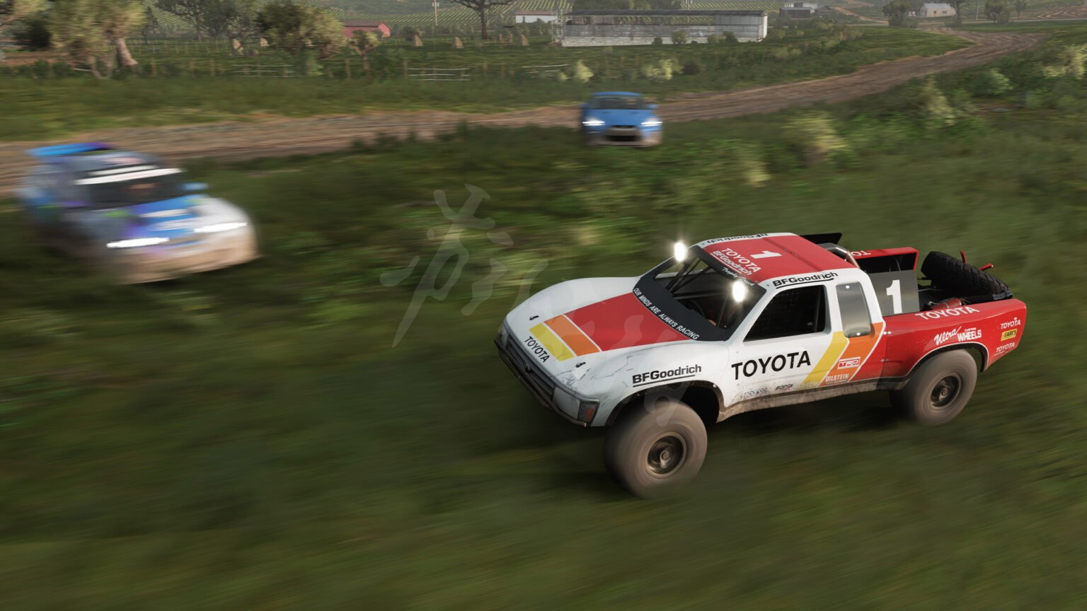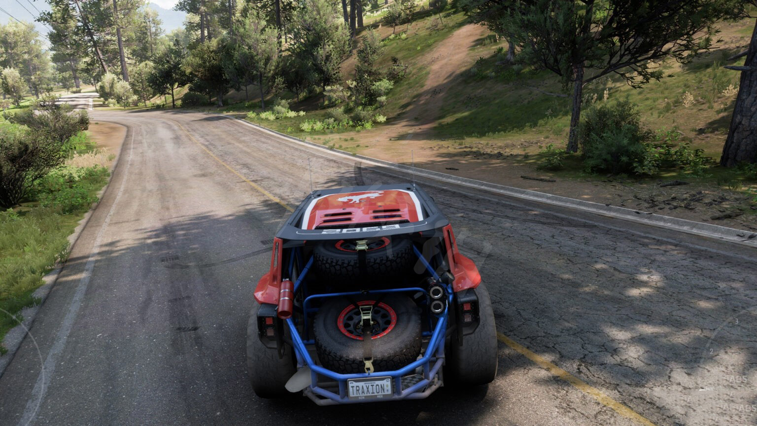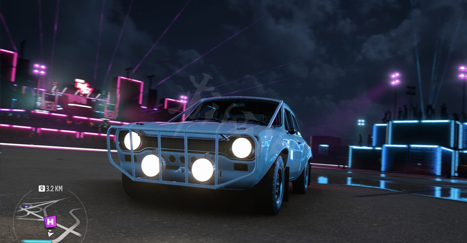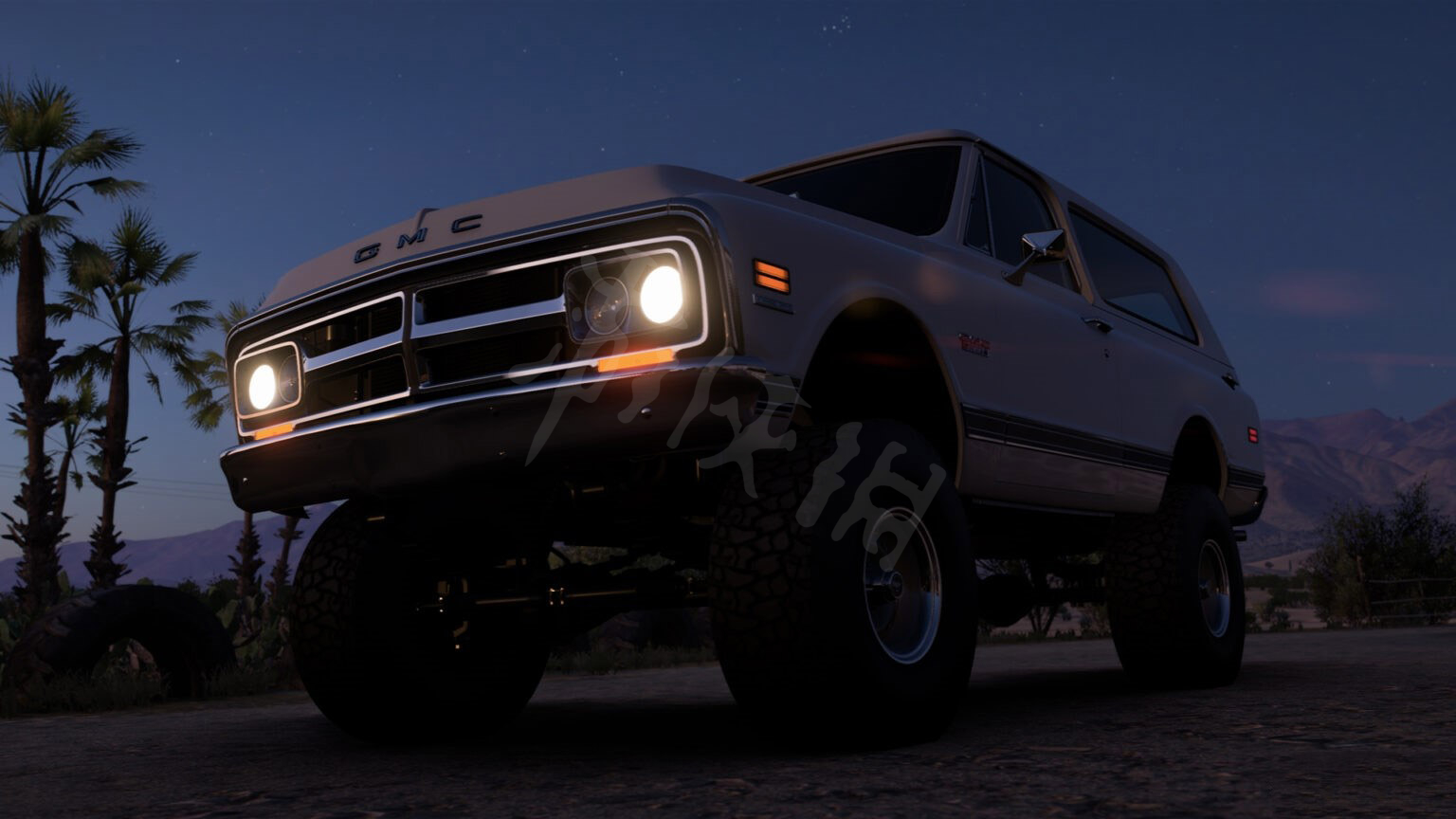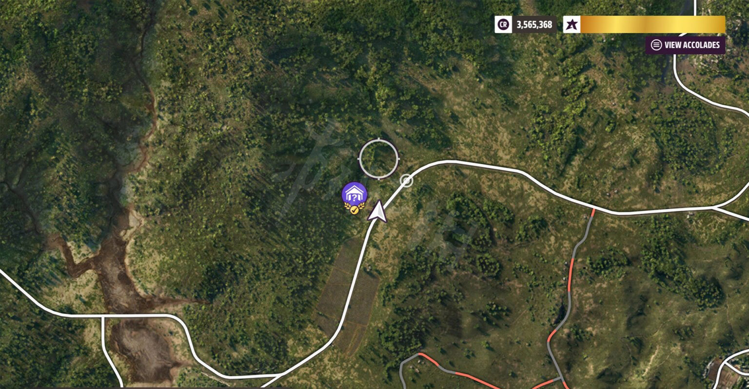 接下来就是经典的福特了。具体位置如下,我们需要爬到火山的另一侧。在急转弯时,会看到一条泥土小路,直接加速冲过去就能看到车房。