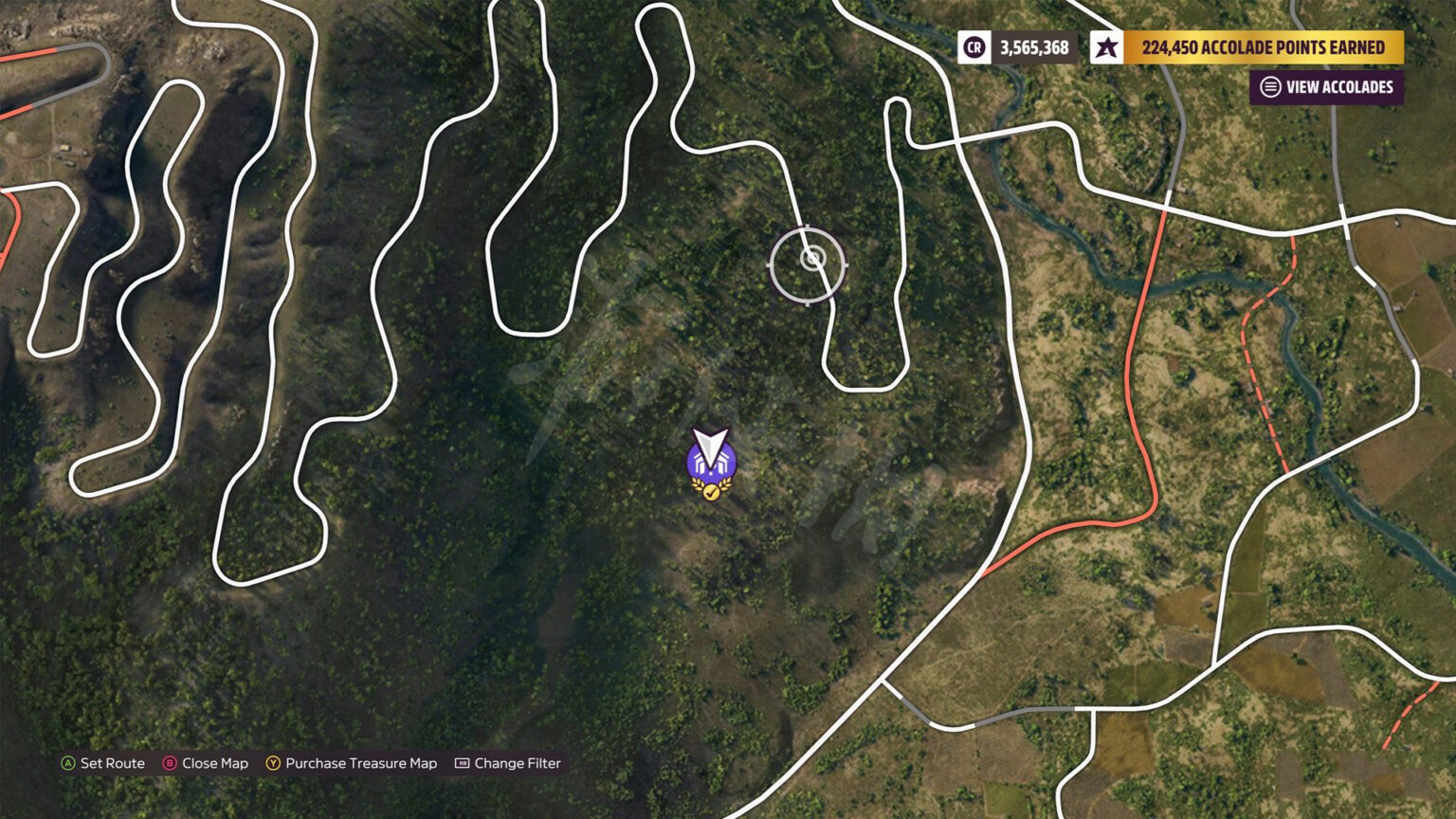 这个车房宝物比较难找,虽然有路通向这里,但附近的路线都很长,而且周围还有很多树林,很容易迷路。在山边的森林深处多转几圈应该就能找到。前往下图所示位置,在向左拐之前应该就能看到一条土路。