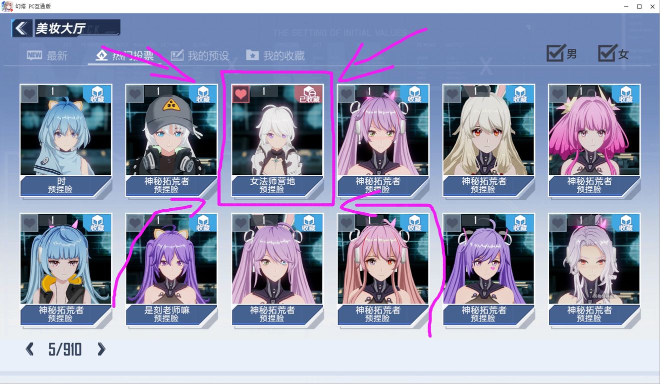 5.除了可以导入别人的捏脸,还可以点右上角收藏。