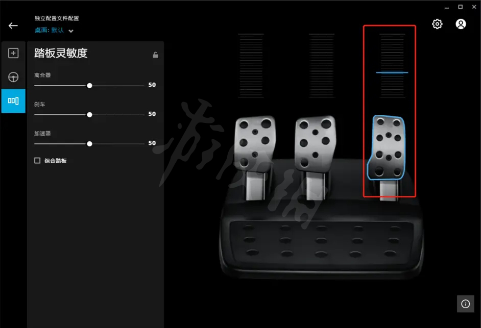2、确认方向盘在G HUB能正常识别并测试方向盘和踏板 。