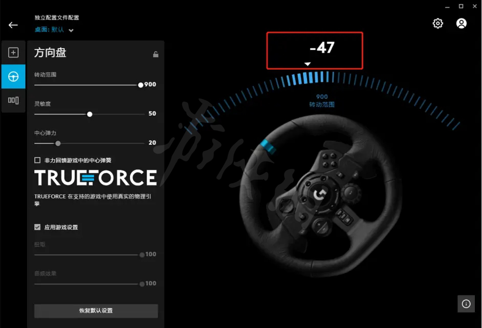 如果转动方向盘或踩踏板G HUB界面无变化,请检查电源连接线或重新插拔USB线。