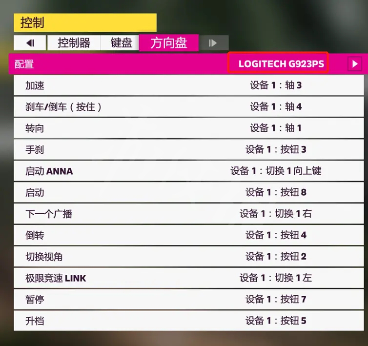 键盘或鼠标操作 设置→ 控制→方向盘界面 ,确认地平线5已识别方向盘。如果你的方向盘未正常识别可以使用链接内方法解决:解决steam平台无法识别方向盘的问题。