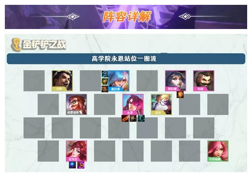 金铲铲之战双城之战已经开始了,小伙伴们都想知道最强阵容是谁然后是怎么玩的,今天就带来了目前来说最强的阵容高学院永恩的阵容搭配、装备和运营的详细讲解,一起看下《金