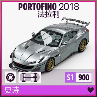 个人喜欢的法拉利PORTOFINO 2018跟之前2.0版本调教又微调了齿比提速有所提升,胎压防倾角也做了调整尽量让车子别推头,和之前比有所提升但还是有点推,手动自动都可以,适合萌新练手,注意注意注意此车用了热熔光头胎不适合雨天和雪天比赛,一定注意选这车还是以为颜值还有就是可以敞篷。