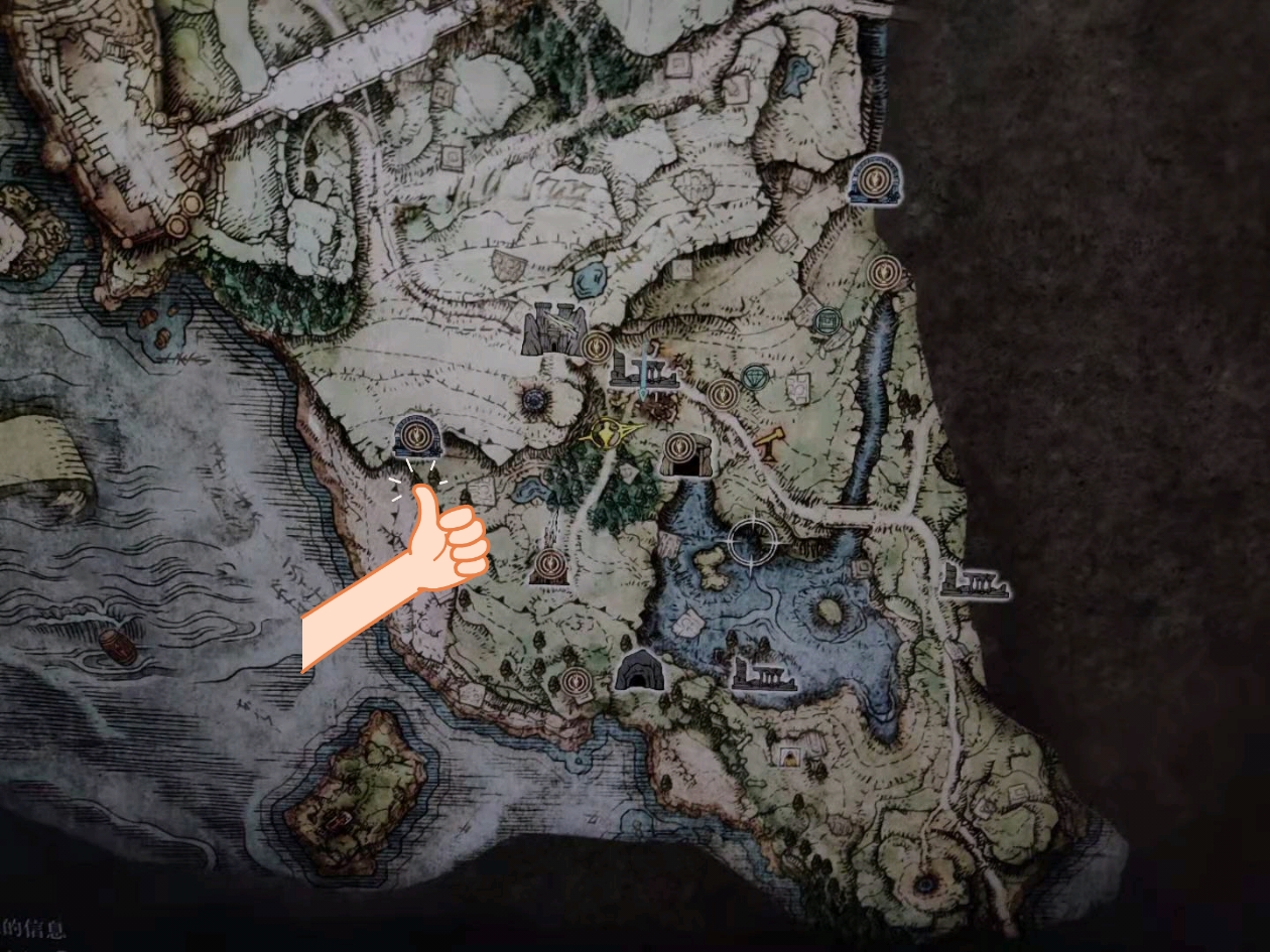 在拇指那个位置的赐福是个洞窟,打完洞窟boss拿剑阵。