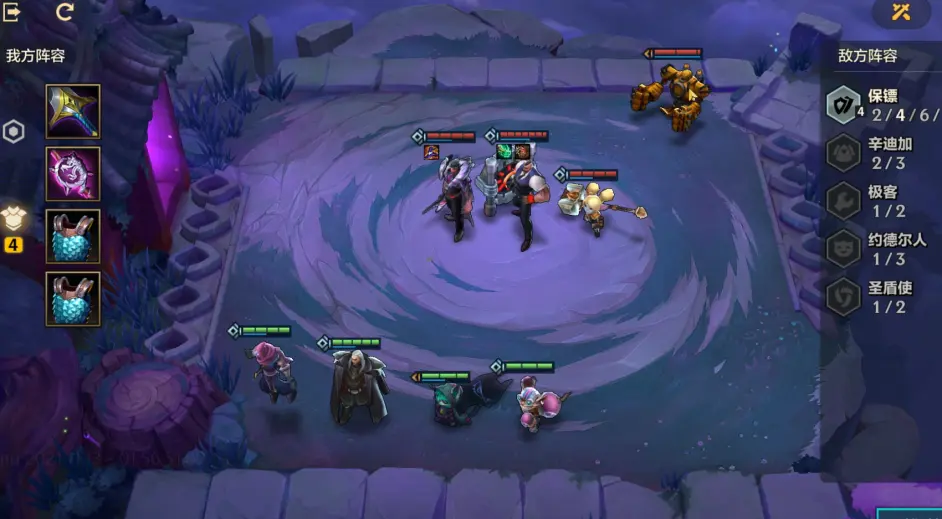 敌方阵容是4保镖,阵容坦度较高,但缺少输出,且装备搭配也不合理。