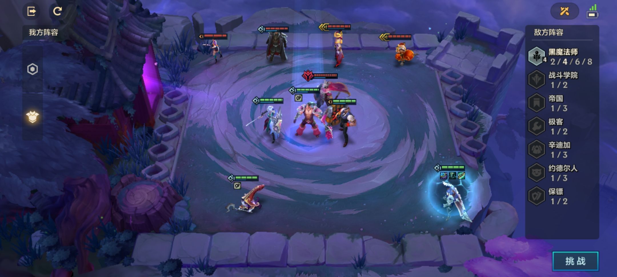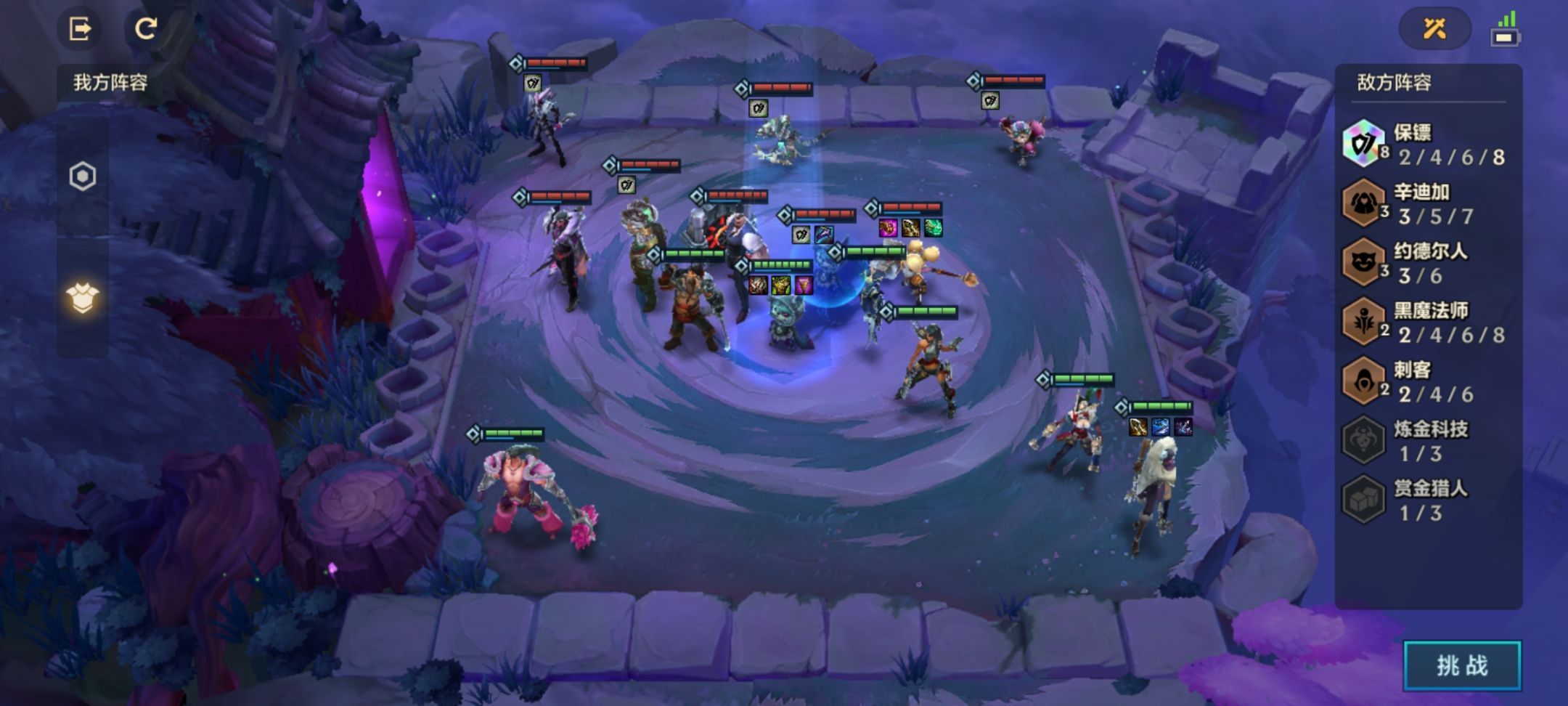 首先来到我们的第一关,对方阵容虽然只有三个弈子,但除了个腿有点瘸的,其它两个人高马大,但是遇事不决,就向左看,自古谁有披风谁是主角,咱也有我们的乌鸦统领啊。咱大统领昨天梦到自己成了泰坦,今天直接拥有了钢铁般的意志,咱们保镖大队,团结一致,一一撂倒,齐心协力,全都干翻。