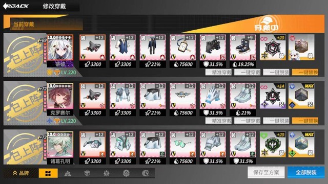 这关的主力输出是【克罗·五星】,徽章·奥义+布景·火力·黄,说实话,这输出看不懂,不知道为什么这么高。这阵容只要能抗住,蓝鸡第一个死,所以第三排放个最弱的治疗就行了。
