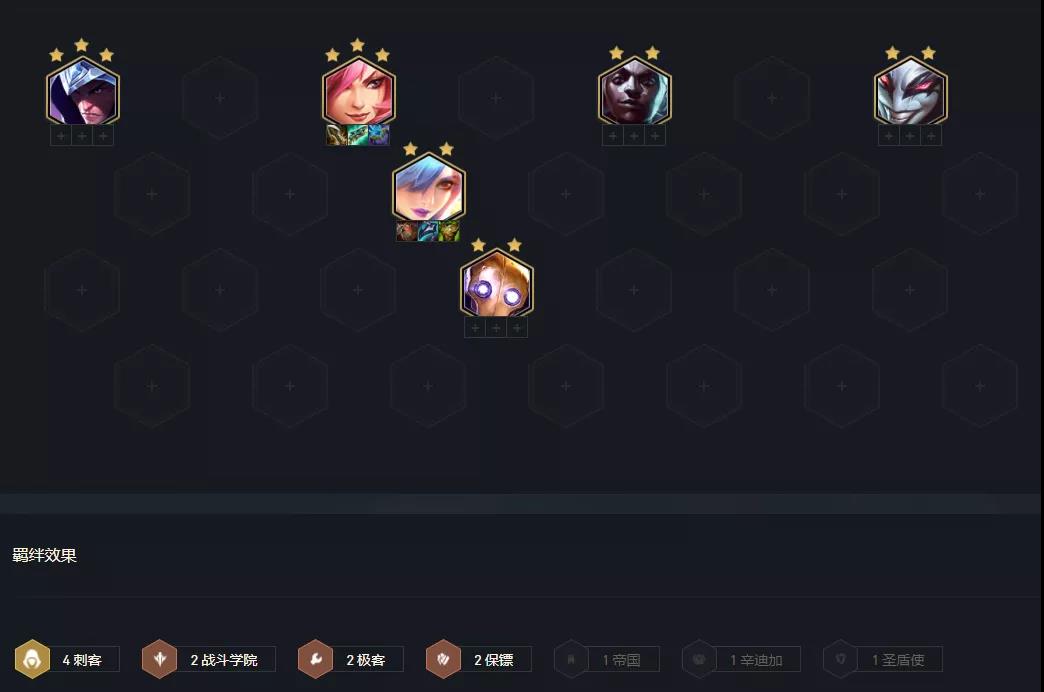 6D学院刺吃分非常稳定,2星卡特中期乃至在5-2之前都能强势锁血。学院刺主流玩法有两种,一种正常玩法,一种圣盾卡特刺,两套阵容强度差不太多,吃分都比较稳定,但刺客缺点也是比较大的,对局后期都是比较吃阿卡丽。阵容6人口为基础剩下看海克斯选择阵容的羁绊。