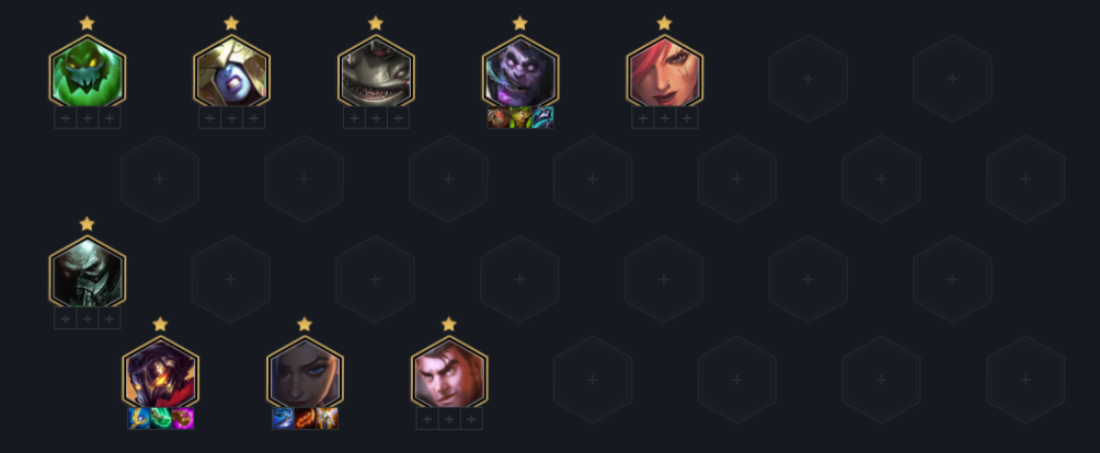 不管是1,2,3级海克斯只要开局有炼金过载就可以无脑玩这套阵容,必前2,不遇到超级胡的基本都吃鸡。