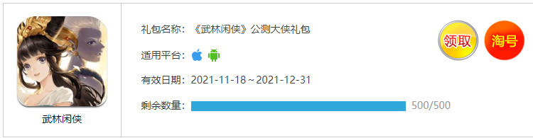 公测侠义礼包:《武林闲侠》公测侠义礼包