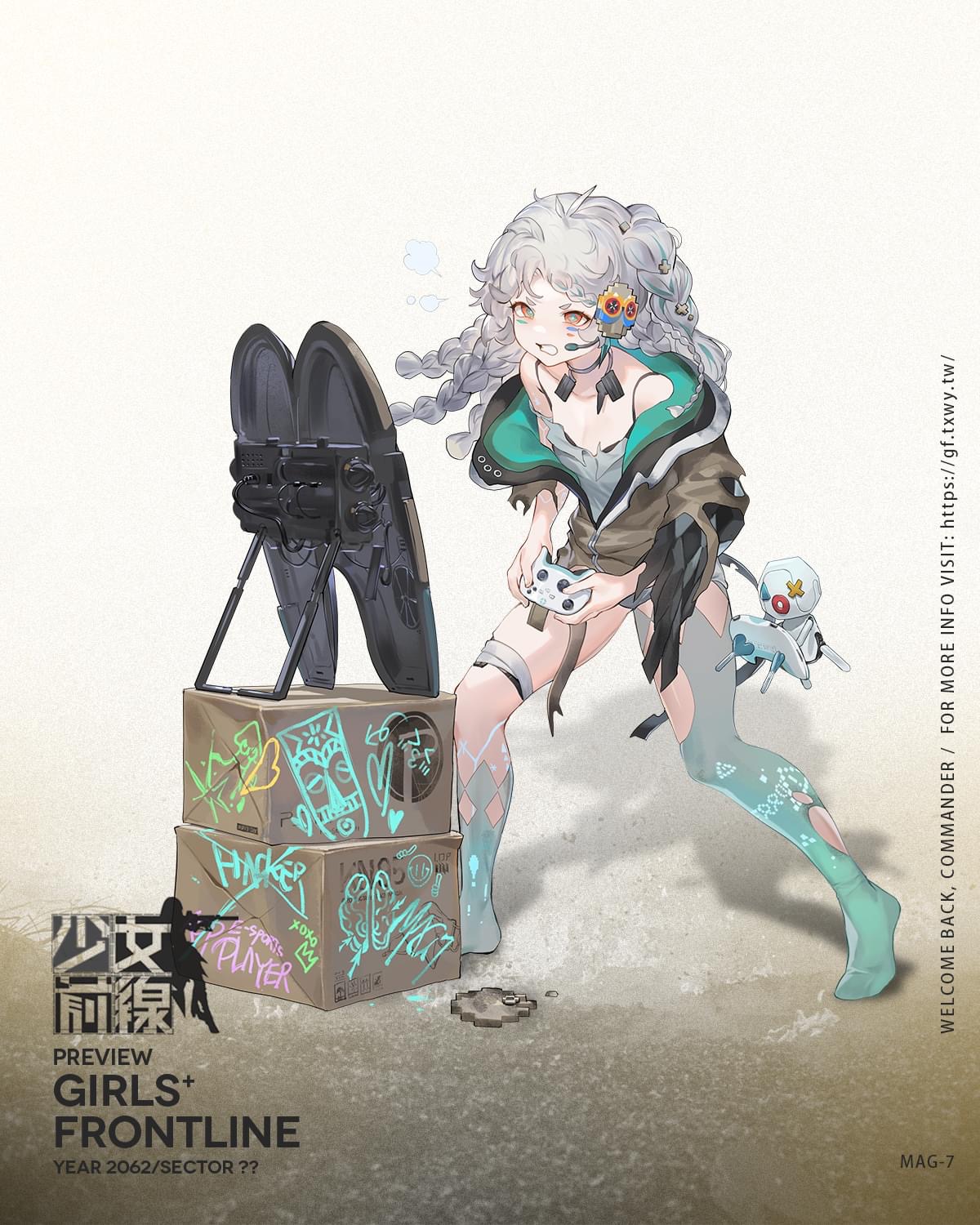 古灵精怪的腹黑人形,是在格里芬数-数二的FPS游戏高手,无论是在游戏还是作战时,都喜欢玩弄与嘲讽敌人,但在遇到难对付的对手时,也会拿出全力与其作战。拥有一个能够辅助自己作战的小型机器人”乌库鲁",但其主要作用还是游戏伙伴。