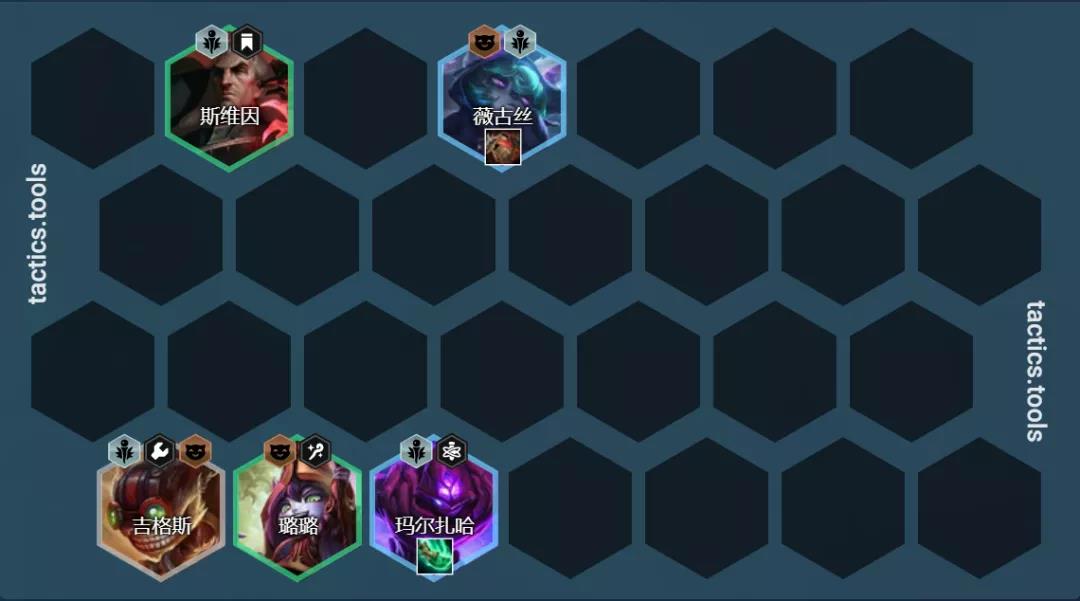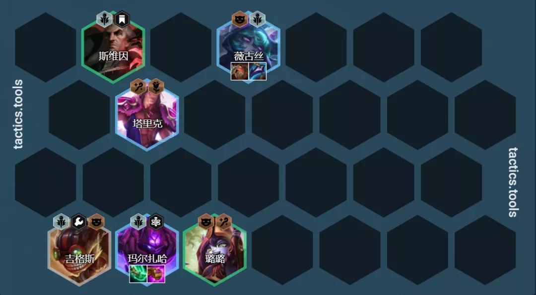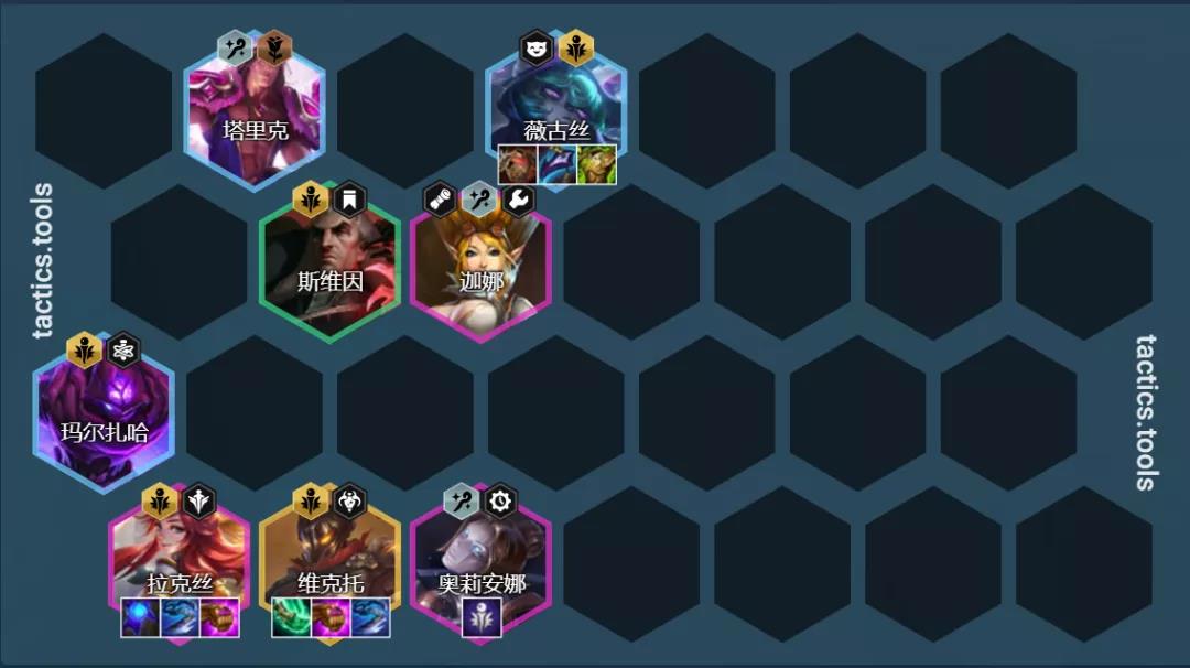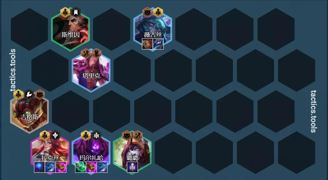 阵容组成:斯维因、薇古丝、塔里克、马尔扎哈、塔里克、拉克丝、奥利安娜、维克托