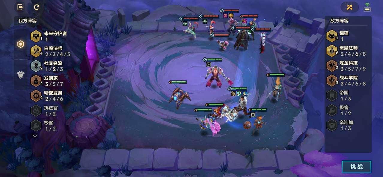 1、这一关我方有个俩星的杰斯,是不是思路就清晰起来了,对面羁绊有6黑魔法师和3炼金的加成,看似比较厉害,但其实也就那样,我方有着4白魔法师的高魔抗加成,所以比较好打。