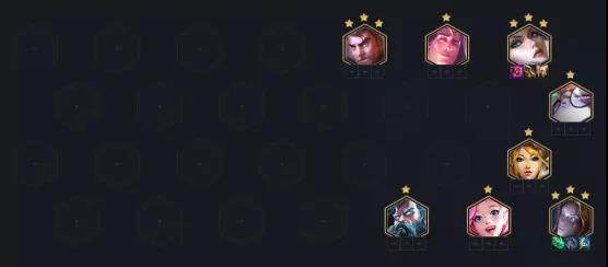 时光守护者 基兰、瓦洛兰之盾 塔里克、风暴之怒 迦娜、星籁歌姬 萨勒芬妮、发条魔灵 奥莉安娜、无双剑姬 菲奥娜(阵容主C)、未来守护者 杰斯、魔法猫咪 悠米