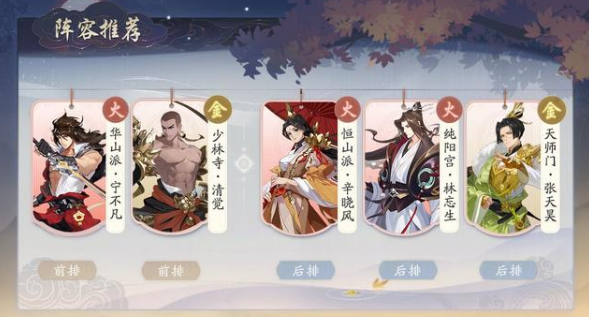 目前,推荐大家可以用其来搭配两个阵容,第一个阵容的前排由少林和华山组成,后排由恒山、纯阳和天师组成,第二个阵容的前排由藏剑和华山组成,后排由恒山、嵩山和天师组成。