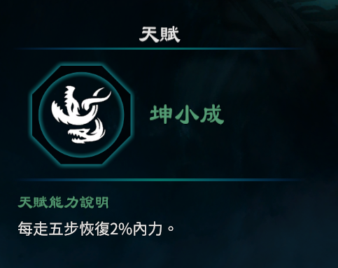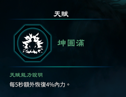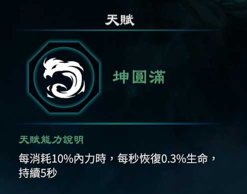 2.每消耗10%内力时,每秒恢复0.3%生命,持续5秒。