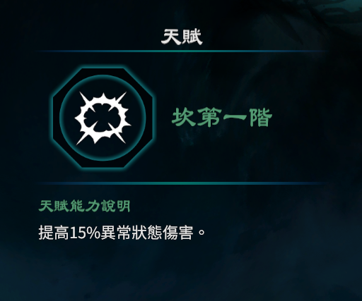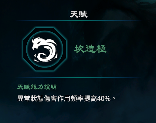 1.提高40%异常状态伤害及异常状态伤害可以造成爆击。