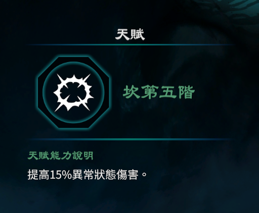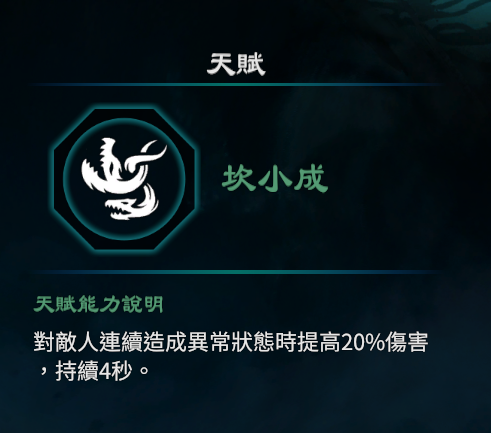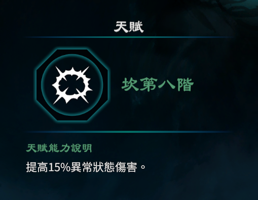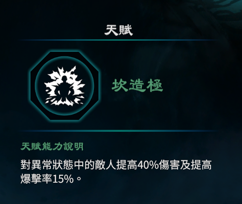 3.对异常状态中的敌人提高40%伤害及提高爆击率15%。