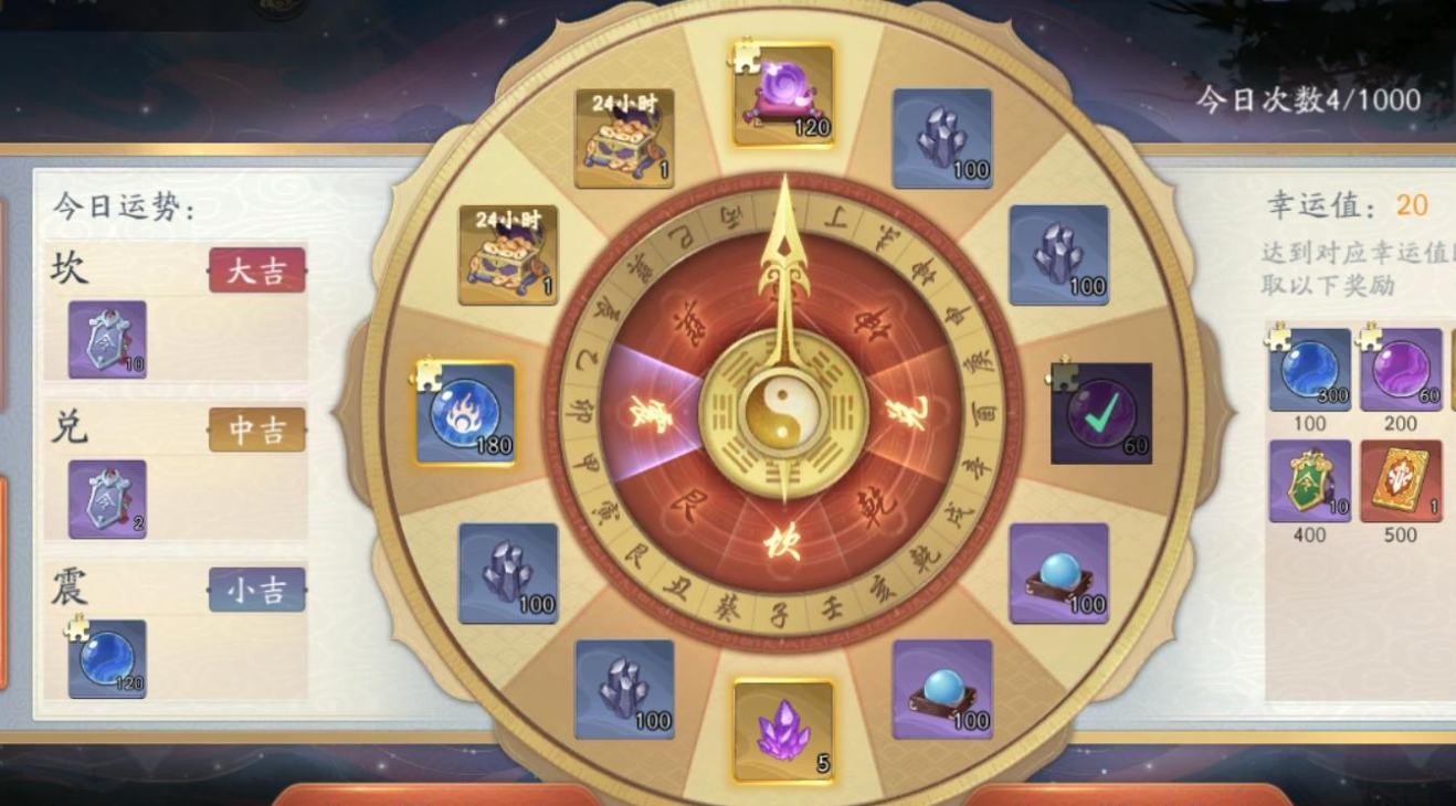 2、分为银司南和金司南,银思南的转盘中可能出现修为丹、突破丹,是值得刷的,金司南中最好的奖励是120个真大侠丹,刷出来的同学建议抽到之后再换奖池