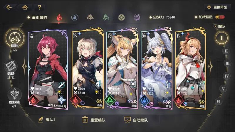 6、其余系队伍在前期非常难搭配出整体效果,不建议大家头铁去强抽角色凑队。