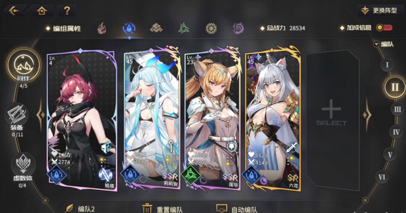 抽到莉莉安+莲华的阵容开局,有时间就多凹个六花出来。