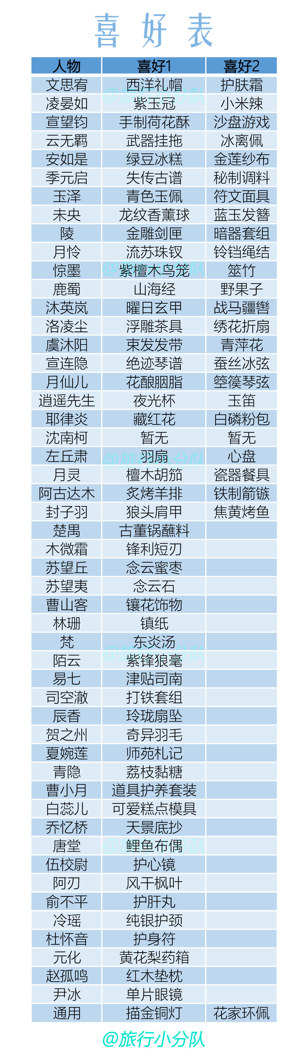 3、通用的两个物品也没有具体数值,但是目前没有名士的喜好是那两个,送给谁加的好感度都是一样的。