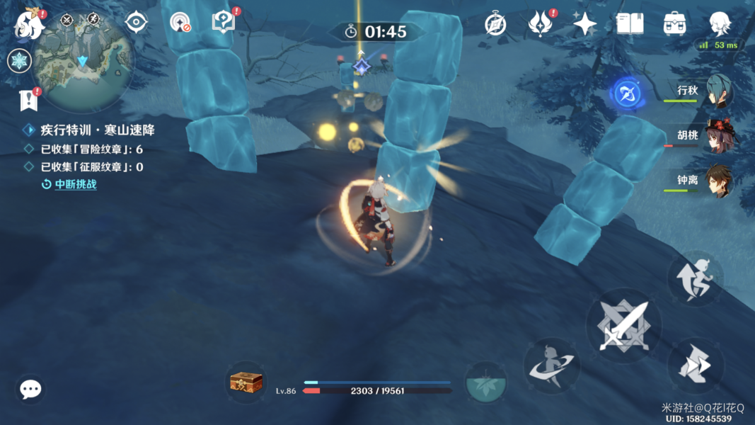 2、第一个疾行特训:即使是我慢悠悠截图也可以很轻松完成10000分以上,所以稍微快点别卡顿即可~其中要注意的是,吃道具才可以打底部发光的冰块