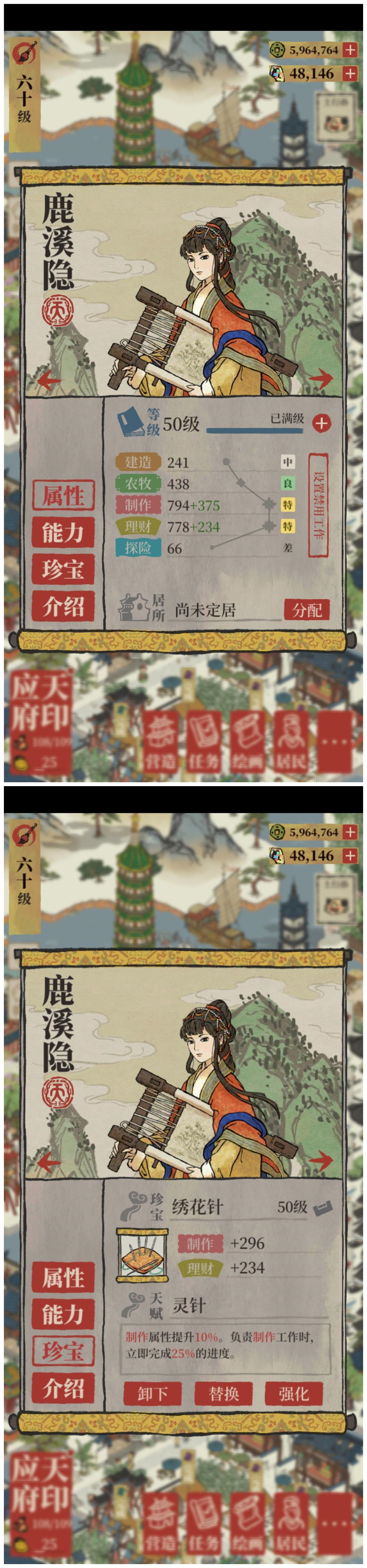 江南百景图鹿溪隐的珍宝是绣花针,新更新的江南百景图卡池已经是可以抽取的了,那么这个角色属性怎么样呢?很多小伙伴犹豫要不要培养她,今天带来了《江南百景图》鹿溪隐天