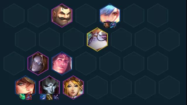 阵容组成:布隆(4)曙光(3)猫咪(5)发条(4)宝石(3)女枪(3)烬(4)风女(4)