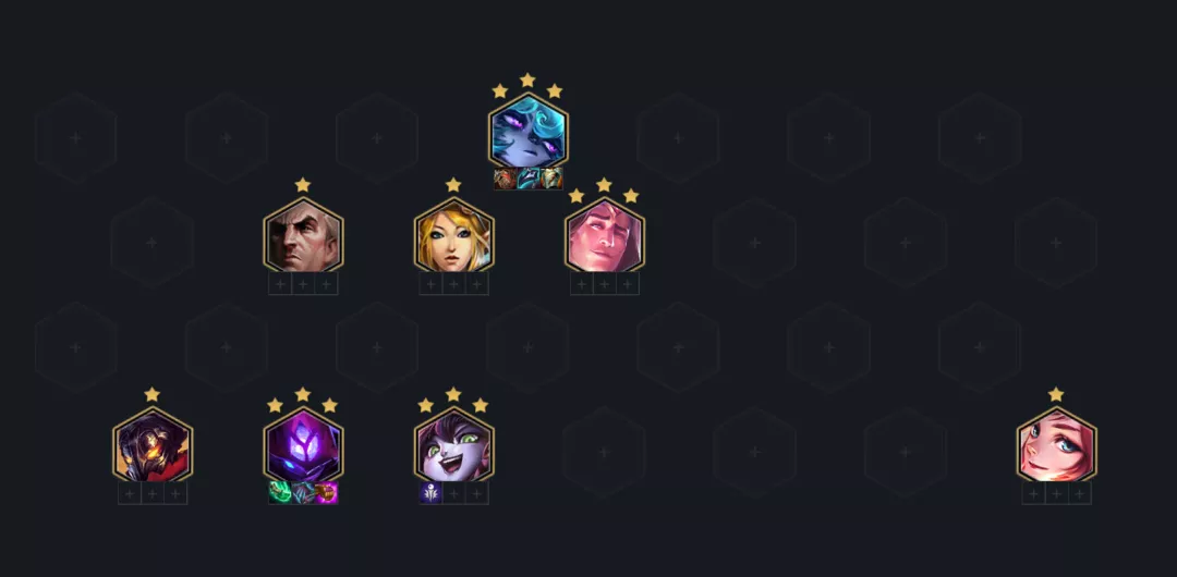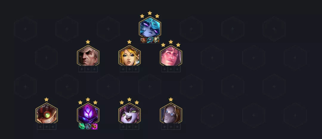 阵容组成:璐璐、斯维因、马尔扎哈、薇古丝、塔里克、迦娜、拉克丝、维克托(有黑魔法师转职)