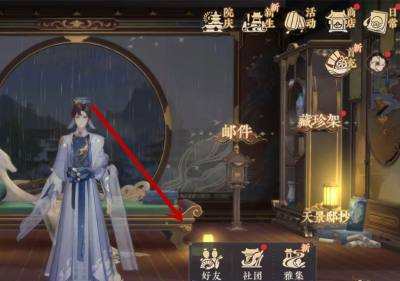 首先,玩家登录游戏,进入主界面,往主界面右下角可以看到“好友”一项(下方红色箭头处),点击即可。