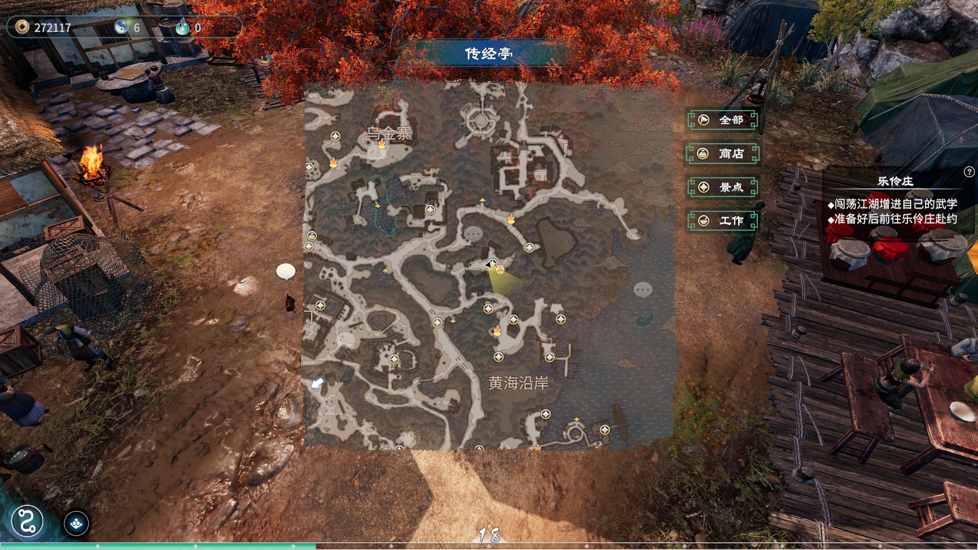 前方树下站着一个武侠迷,跟他对话可触发海寇传闻。