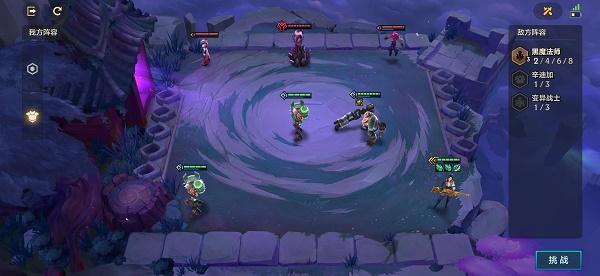 2、将巨魔和炼金拉到最前面顶伤害,女警放在右下角打输出即可,还有一个炼金放在左下角,站位如上图所示。