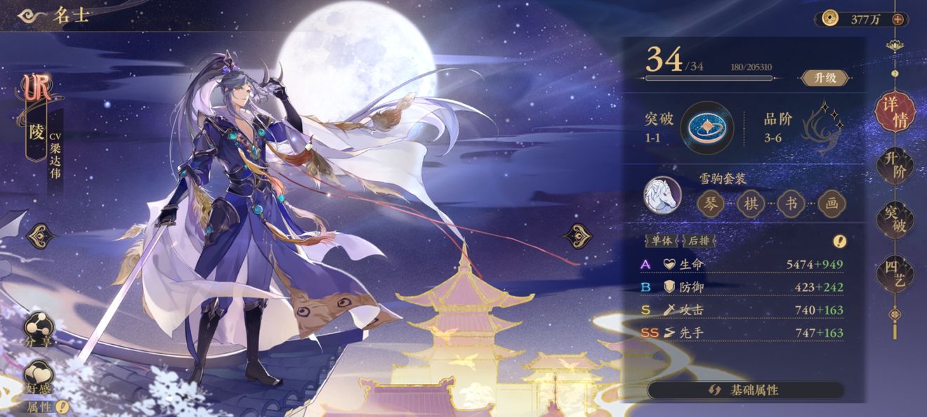 6、四艺:小季蓝色玉牛,凌宴如蓝紫混搭灵蛇,陵紫色雪驹,其他都是昨天刷的蓝紫混搭兔子。稍微强化了一下陵和凌宴如的四艺,其他还是1级。