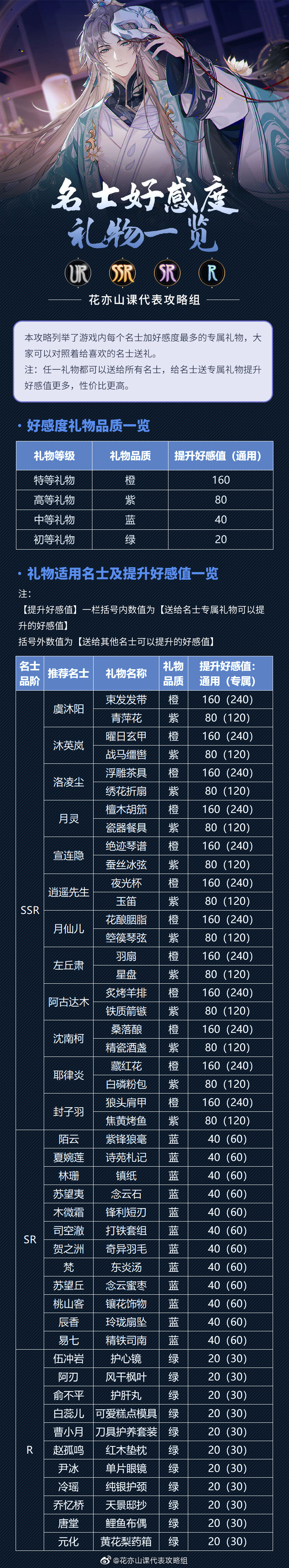 花亦山心之月全礼物好感度具体数值一览